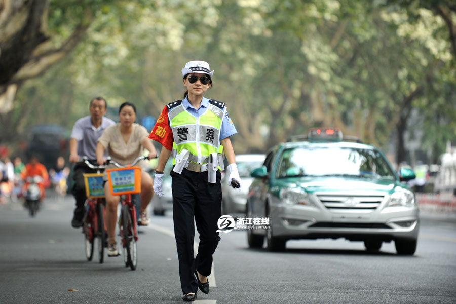 今年国庆假期,杭州交警部门全部警力参与执勤,保障城区特别是西湖景区道路畅通。