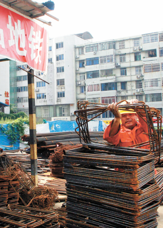 成都红星路地铁建设工地上,工人们依然在紧张施工。