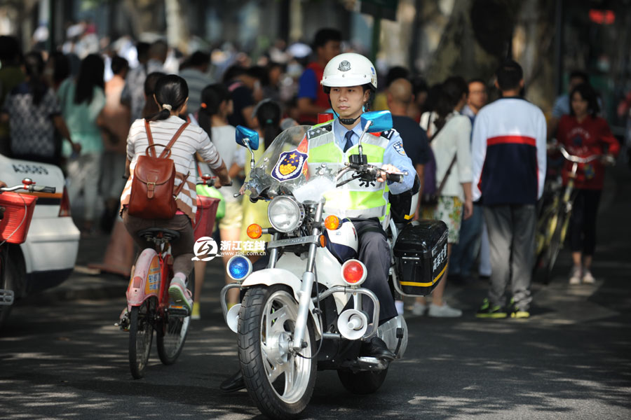 今年国庆假期,杭州交警部门全部警力参与执勤,保障城区特别是西湖景区道路畅通。