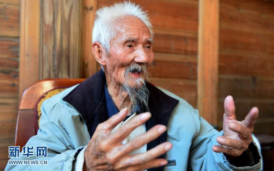 这是红军失散人员刘金金在接受记者采访(10月18日摄)。刘金金是一位参加过红军长征的老兵。1914年,他出生在长汀,今年正好100岁。1934年,20岁的刘金金正式加入红军。同年10月,刘金金所在的34师从于都出发长征。11月,惨烈的湘江战役打响。红34师浴血奋战,最终弹尽粮绝,被截断在湘江东岸。刘金金在撤退途中受伤,被部队送到当地群众家隐藏疗养。新华社记者 魏培全 摄