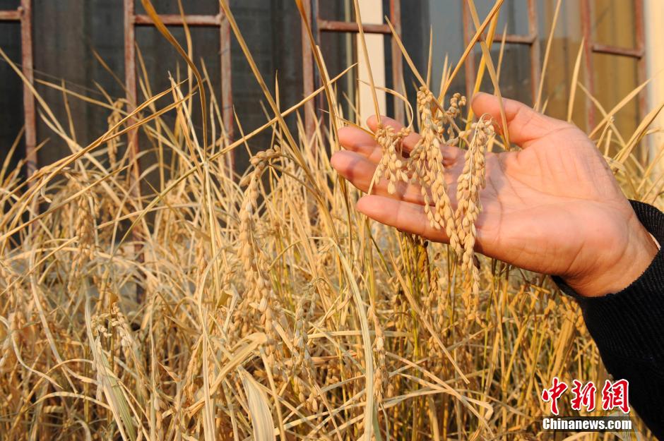 10月22日,长春市民焦玉海在自家阳台上打理水稻。焦玉海介绍,他今年70岁,自退休后就在自家阳台研究用废旧箱子、塑料布等材料仿照土地坏境种植农作物,在2014年他已成功收获水稻10余斤。 中新社发 张瑶 摄