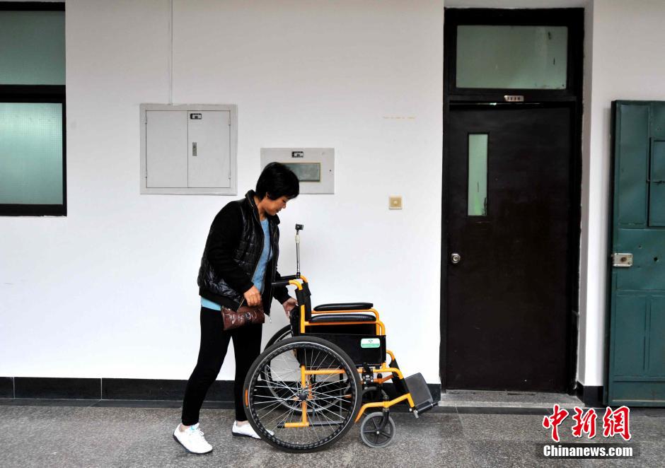 图为11月11日,离下课时间还早,赖志强的妈妈就早早来到教室外等候。 张斌 摄