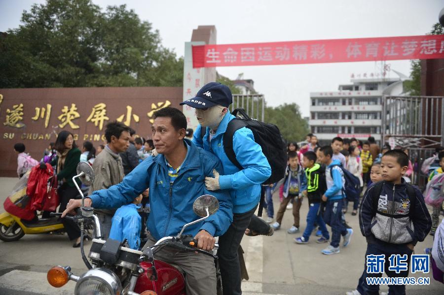 周涛坐着爸爸的摩托车回家(11月5日摄)。
