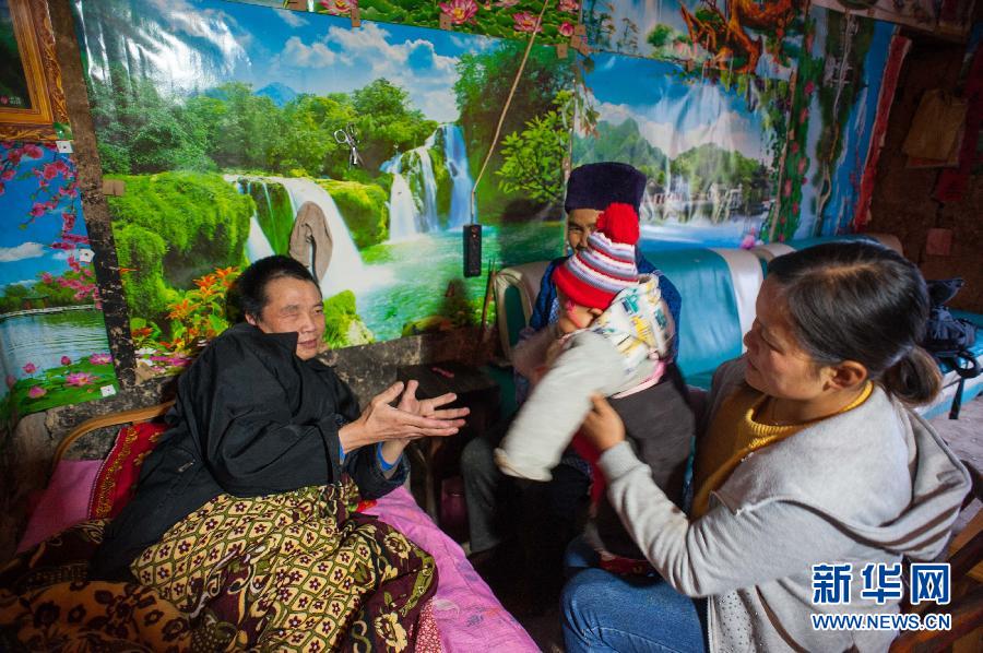 11月24日,罗应艳(右一)抱着女儿和瘫痪在床的父亲罗典成(左一)在一起。摘菜、洗衣、做饭、倒便盆、给父亲换药……这就是“90后”巫山姑娘罗应艳每天的生活。即使已为人母,但7年来照顾瘫痪在床的养父罗典成已成为她生活中最重要的部分。 50多岁的罗典成是重庆市巫山县金坪乡袁都村山区的一位普通农民,20多年前抱养了刚出生十几天的罗应艳。在养父的悉心照料下,罗应艳读完了小学和一半的初中学业。2008年在外打工的罗典成在工地遭遇意外,造成脊椎断裂、下肢瘫痪,从此家庭的重担就落到了年仅14岁的罗应艳身上。罗应艳主动放弃学业,回家照顾瘫痪父亲和年老的奶奶,承担起全家人的生计。由于无钱手术,罗典成坏死的下肢腐烂,罗应艳常常一边哭一边精心给父亲换药洗身。大山孝女罗应艳的故事感动了金坪乡的每个人,2012年在金坪乡干部的协调和努力下,罗典成完成了截肢手术。2013年,罗应艳与外乡小伙雷长保结婚。谈到如今的生活,仍住在漏雨土墙房中的罗应艳说,虽然日子还需要仔细计算着过,但现在已经比过去好了很多。新华社记者 刘潺 摄