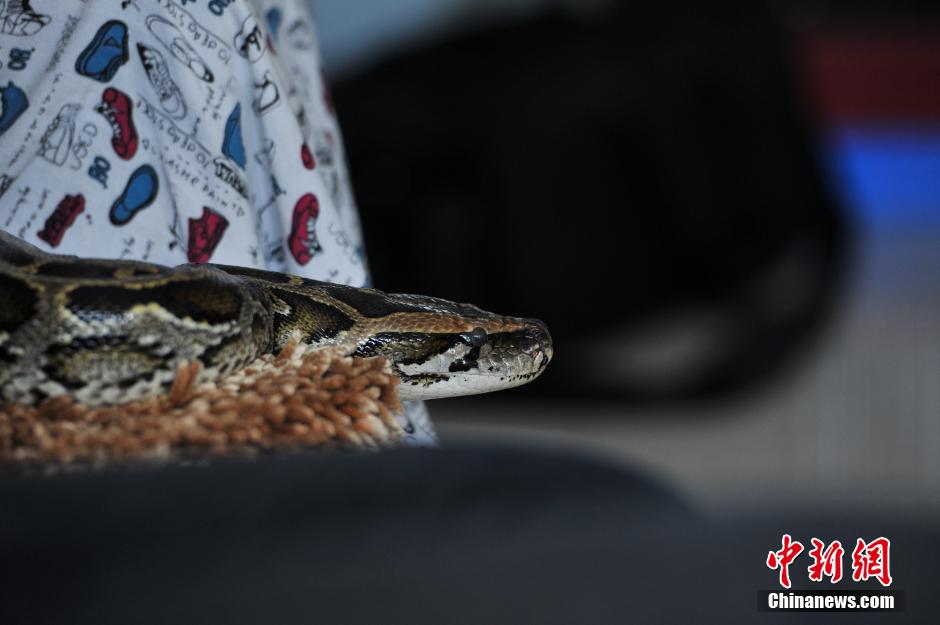 12月2日,白拓家中的蟒蛇。中新社发 任东 摄