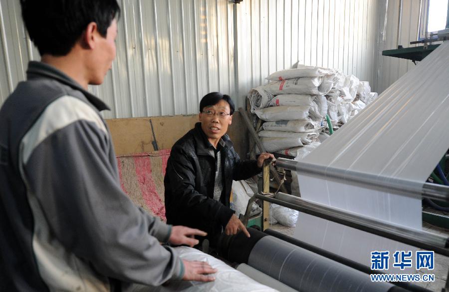 12月4日,樊文辉(右)在指导员工操作吹塑机。