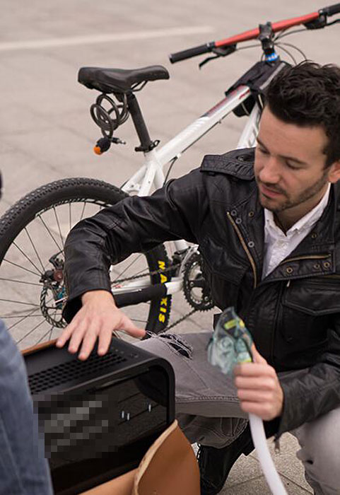 近日,有网友爆料称,在成都环球中心附近遇到一个老外,为了对抗雾霾,制作了一个便携式空气净化器,每天背着上下班。从图片上看,老外身上像是背了个方方正正的小型行李箱,一根管子拉出,上面接了个类似氧气面罩的东西,老外边骑车,边“吸氧”了。