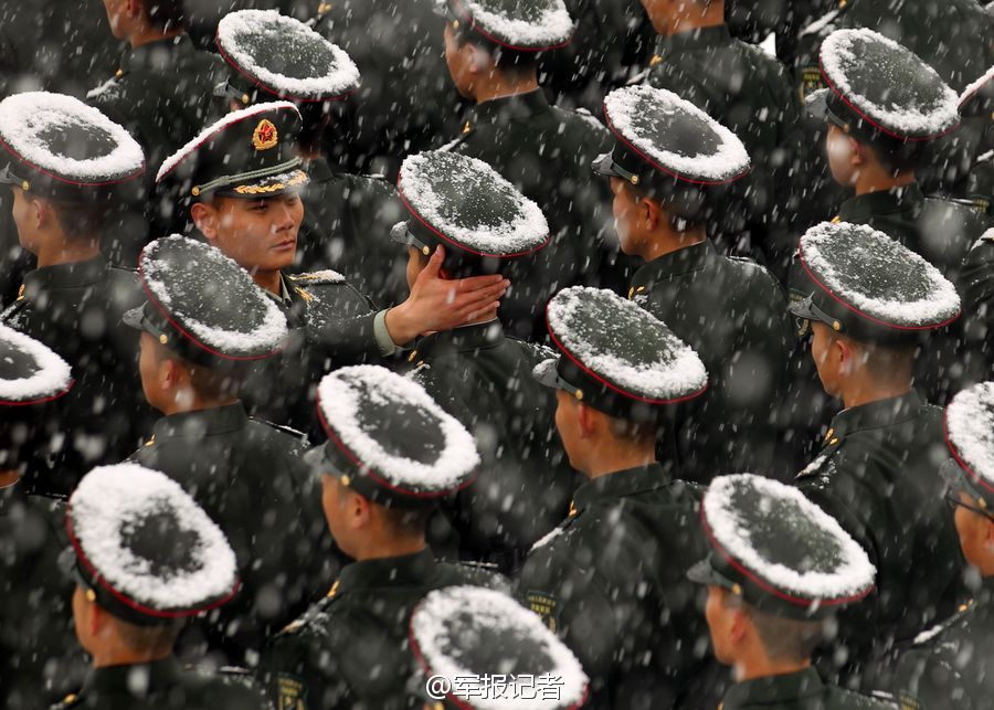 据解放军报法人微博“军报记者”报道,12月7日,胶东半岛普降大雪,严寒扑面。26集团军某炮兵团新战士在风雪中组织训练,锻炼军人精气神,争做有血性的新时期军人正成为90后新战士奋斗目标和价值取向。(仇成梁摄)