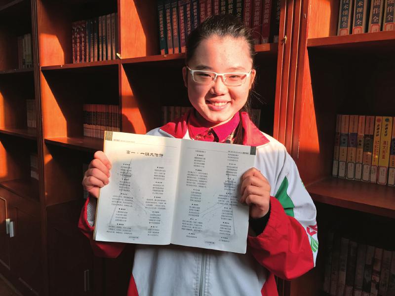 高一期末考试结束,高二就要分文理班了,相处了一年的同学们感情非常好,卢怡心觉得,自己要为班上的同学留下点什么有意义的东西。“我平时非常喜欢中国的古典文学,不仅意境很美,而且能用很短的文字表达很多的情感。”于是,她决定为班上的每一位同学的姓名都写上一首古诗。
