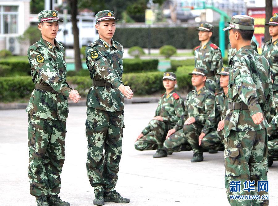 新战士林志辉(左一)、林志煌(左二)在连队进行单兵动作训练(9月30日摄)。在武警上海总队三支队新兵连,一对双胞胎兄弟格外引人注意,他们是来自福建莆田的林志辉、林志煌。过去3个月里,他们与一同参军入伍的战友一道在摸爬滚打、锻钢淬火中度过了属于他们的“兵之初”。记者用镜头连续记录他们的训练生活,描绘出从普通青年成长为合格战士的人生轨迹。新华社记者 陈飞 摄