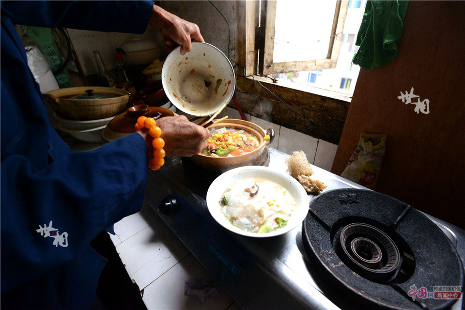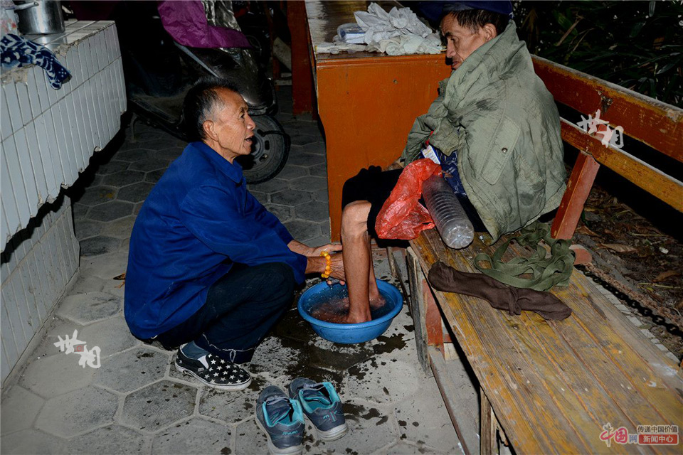 阮权给弟弟阮德华擦洗完身子之后,为弟弟洗脚。在照顾弟弟34个年头中,中途阮权也曾将弟弟送去过养老院,大约有一年的时间,但他最终还是放心不下,就又把弟弟接回了家中。