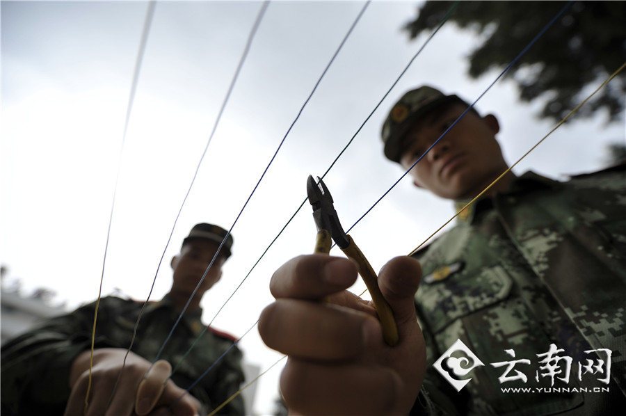 排爆手在武警训练场进行剪线训练,这是排爆手的基本训练科目。