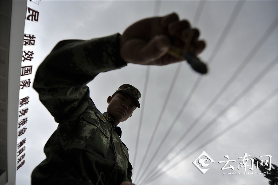 排爆手在武警训练场进行剪线训练,这是排爆手的基本训练科目。