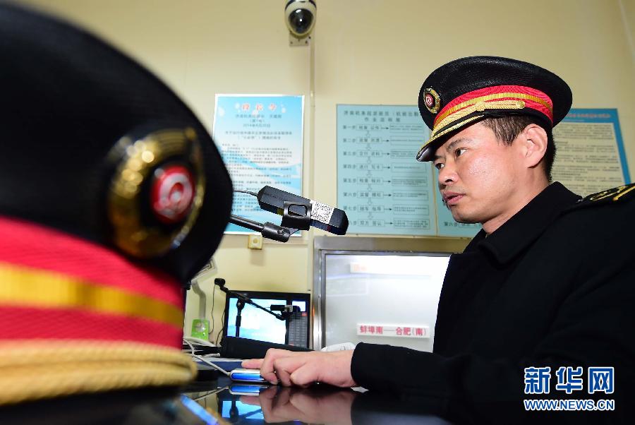 新华社照片,济南,2015年2月3日 火车司机薛军的4本驾照和他的第27次春运 2月3日,动车司机薛军在济南西站派班室验证指纹。济南铁路局济南机务段火车司机薛军拥有“蒸汽机车”“内燃机车”“电力机车”“动车组”4种火车车型的机车驾驶证。随着春运大幕开启,他也将开始自己第27个春运的征程。新华社记者 郭绪雷 摄