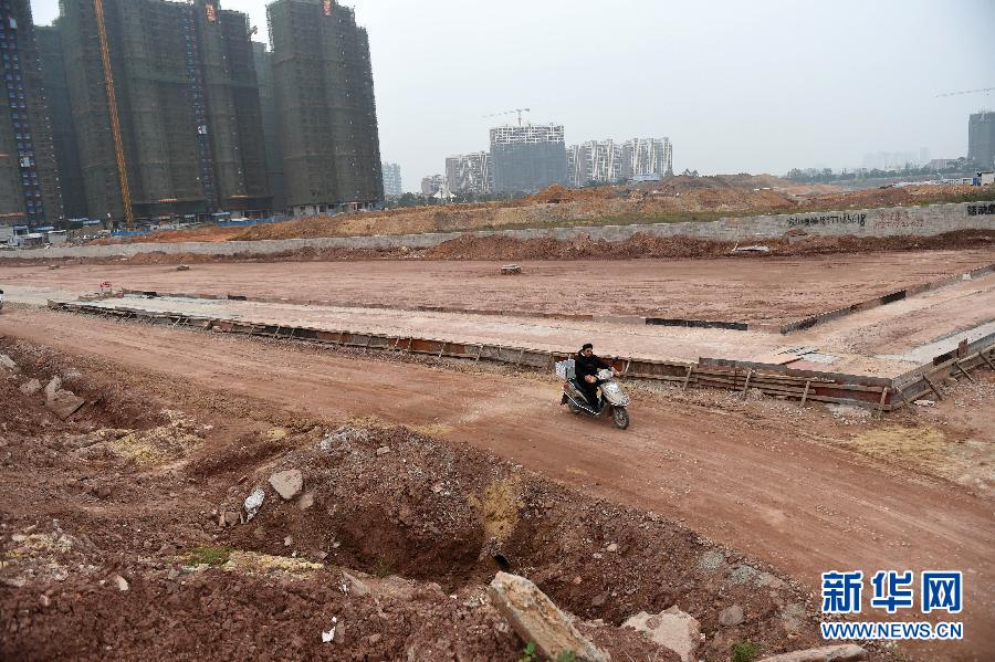 在广西钦州市一个建设工地道路上,杨忠义骑车去“讨薪”(2月5日摄)。 新华社记者陆波岸摄