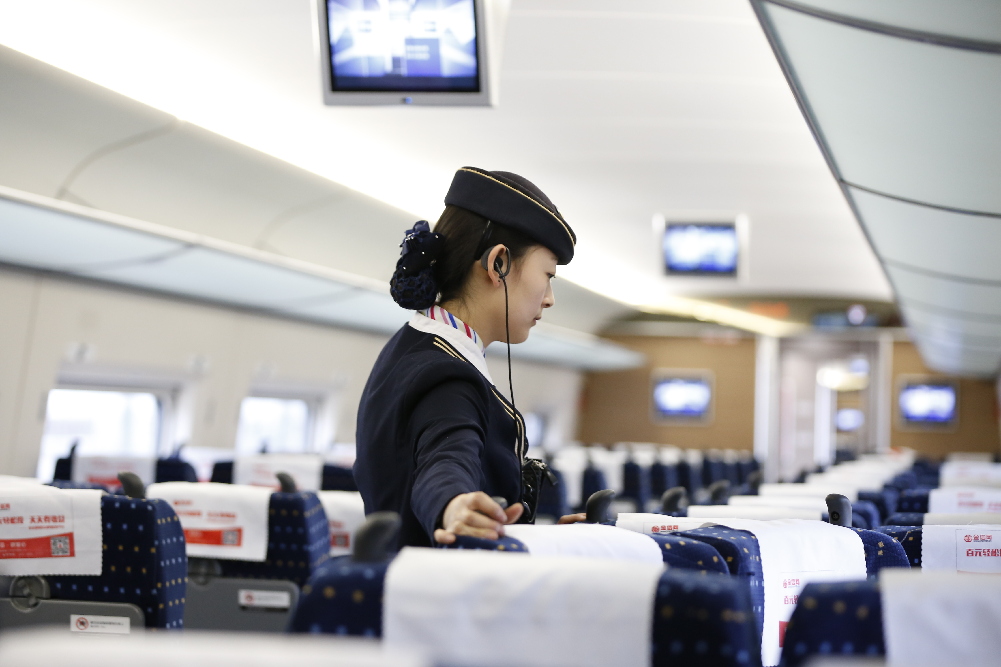 据孔令楠介绍,为了服务好旅客,她们今天站立的时间至少有10个小时,要跑三趟车,需要在狭窄的车厢里来回走十余公里,弯腰对旅客说无数次“您好”。这期间她几乎没有一刻休息的时间。孔令楠说:“虽然大家每天都很辛苦很累,不过一上车、一见到旅客就都像打了‘鸡血’一样,总会把微笑和最好的状态展现出来,希望旅客们在回家的旅途上过得愉快。”