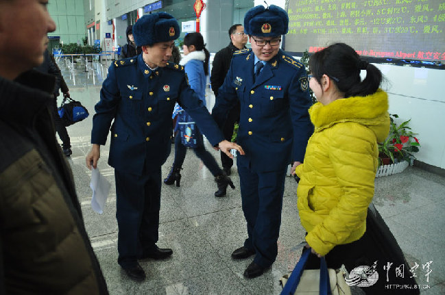 雷达某旅官兵服务接待站的官兵到机场迎接军嫂张敏。颉海书摄