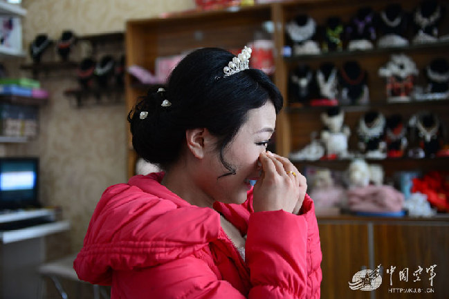 化妆时,另一位新娘,来自山东的王为华——雷达站上士李现革的爱人,忍不住哭了起来。颉海书摄