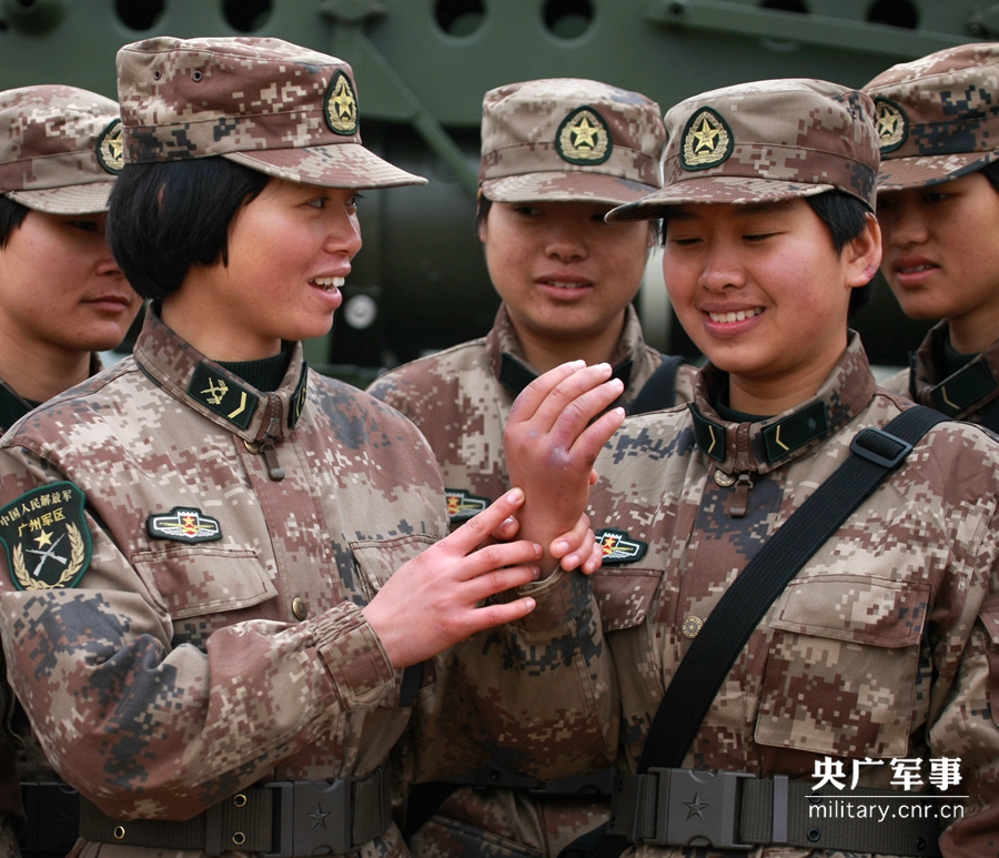 首次实弹射击命中目标,女兵们兴高采烈走下训练场。吴忠勇摄