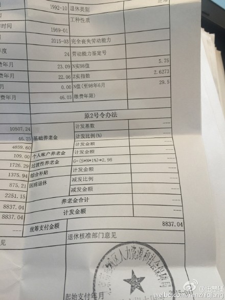 任志强现年64岁,其晒出的退休证显示,他18岁参加工作,工龄46年,退休后每月拿到的退休金是8837.04元。这个金额反映了任志强怎样的薪酬水平?
