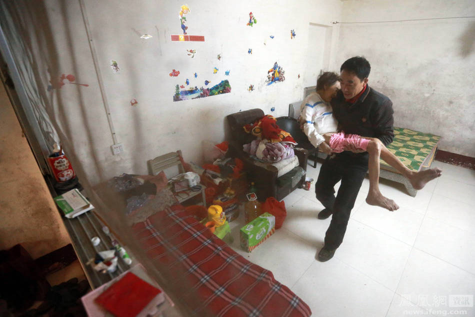 记得母亲瘫痪不久,臀部烂了拇指般大的一个洞。戴训武跑到隔壁县把药买回来,再用尿布包裹好。每天换药喂药,忙前忙后,一刻未停,整整忙了一个多月,直到母亲痊癒。到了冬天,生怕母亲挨冷,他上山砍柴烧炭,每天在母亲床前放一盆炭火。夏天来临,隔三差五还要帮其洗头洗澡。为补贴家庭开支,他上山种罗汉果、辣椒,还养猪。所挣的钱,分文不剩,花在母亲和女儿身上,这样的日子一晃就是10多年。