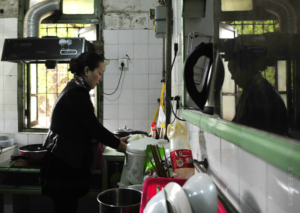 工作时,林丽云会将车内外清洗得焕然一新;居家时,林丽云同样会把生活打理得井井有条。图为林丽云在家中为孩子做饭。