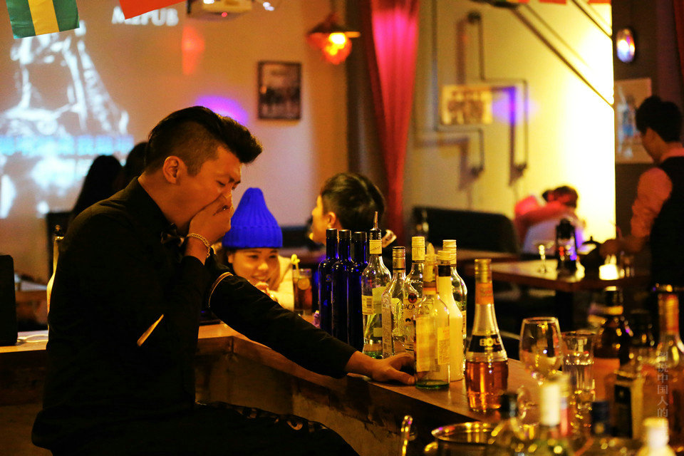 深夜时分,酒吧里依然有着零星的顾客。虽然阿龙也会有疲惫的时候,可是对这份工作,阿龙的热情始终未减。