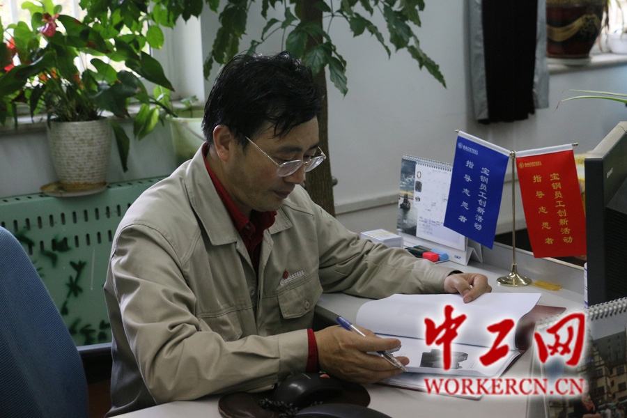 王军在创新工作室。中工网记者 王莹摄
