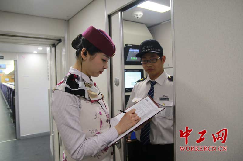 图为列车长王希露对列车设备设施情况签字。古莎 摄
