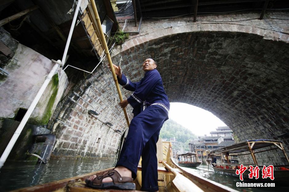 吴天送说,他喜欢在古城的美景中工作,“游客满意我就开心。” 杨华峰 摄