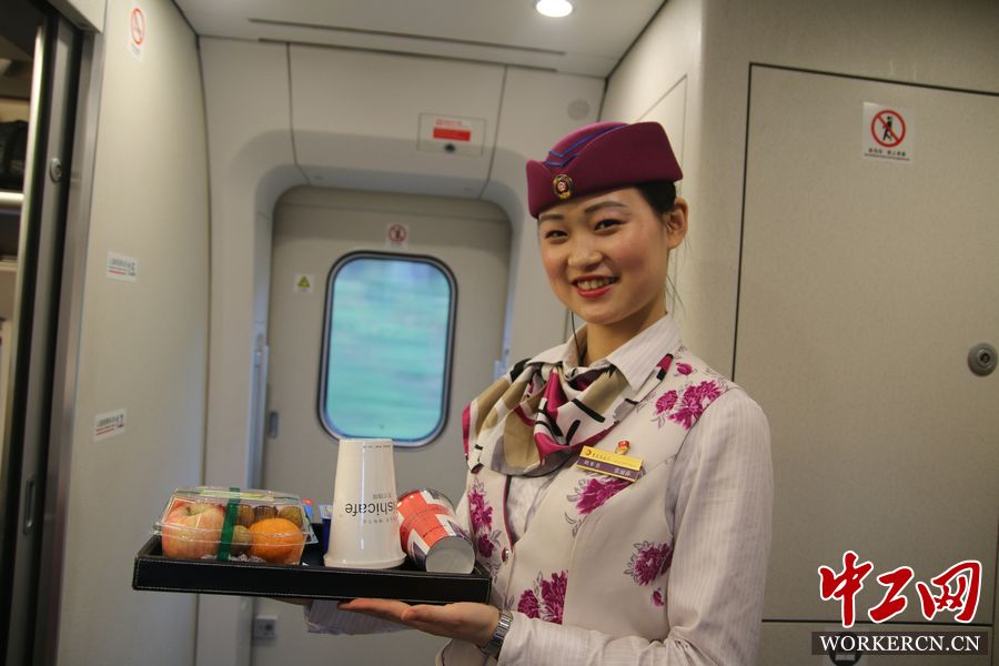 动妹张丽莎准备到车厢销售小食品。古莎摄影