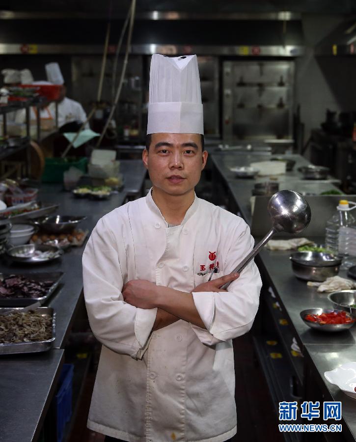 2015年除夕在长沙餐饮老字号玉楼东酒家厨房拍摄的文茂(2月18日摄)。31岁的文茂2004年毕业于长沙市商业职业技术学校厨师专业,毕业后进入玉楼东酒家任厨师至今,目前月收入稳定在6000元左右。从2010年教育规划纲要颁布以来,职业教育在多个领域取得巨大突破和进展,进入了黄金发展期。5年来,职业教育共培养了5000万名中高级技术技能人才,1.33万所职业院校开设了近千个专业、近30万个专业点,基本覆盖了国民经济建设的各个领域。 2014年6月,国务院召开全国职业教育工作会议,印发了《关于加快发展现代职业教育的决定》,提出以培养技术技能人才为目标,到2020年形成具有“中国特色、世界水平”的现代职业教育体系。近年来,高职毕业生就业质量持续提高,毕业半年后就业率达到90%,且毕业生月收入增长“跑赢”通货膨胀;中职的就业率更是连续9年保持在95%以上。越来越多的职业学校学生,在走出校门后成为社会“高薪族”。新华社记者李尕 摄
