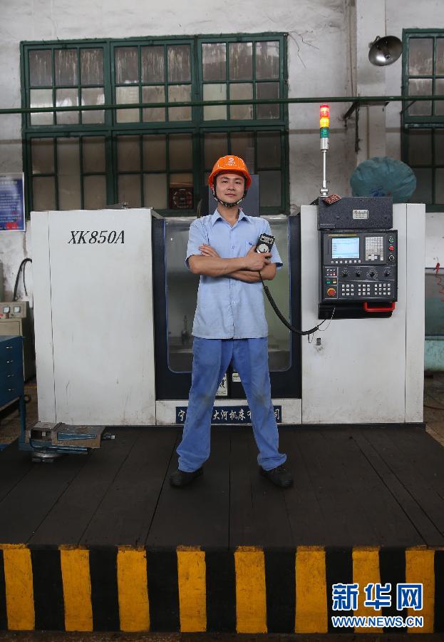 5月14日,龚井波站在湘电集团有限公司的数控机床前留影。27岁的龚井波2010年毕业于湖南工业职业技术学院数控加工技术专业,之后进入湘电集团有限公司,成为一名数控铣工。凭着过硬的专业技术,两年后龚井波就晋级为高级技师,月收入超过6000元。龚井波认为自己的工作充满了挑战,需要与时俱进地学习和钻研。从2010年教育规划纲要颁布以来,职业教育在多个领域取得巨大突破和进展,进入了黄金发展期。5年来,职业教育共培养了5000万名中高级技术技能人才,1.33万所职业院校开设了近千个专业、近30万个专业点,基本覆盖了国民经济建设的各个领域。 2014年6月,国务院召开全国职业教育工作会议,印发了《关于加快发展现代职业教育的决定》,提出以培养技术技能人才为目标,到2020年形成具有“中国特色、世界水平”的现代职业教育体系。近年来,高职毕业生就业质量持续提高,毕业半年后就业率达到90%,且毕业生月收入增长“跑赢”通货膨胀;中职的就业率更是连续9年保持在95%以上。越来越多的职业学校学生,在走出校门后成为社会“高薪族”。新华社记者李尕 摄