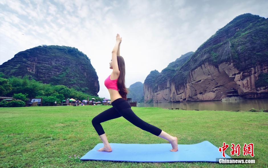 5月19日中国旅游日当天,因姣美面容和惊人柔韧度走红网络的北体校花付佳美现身江西省龙虎山景区“学艺”,和龙虎山的道长一起,有模有样地打起了太极拳,并在天师府、正一观、仙水岩等龙虎山景点大秀高难度瑜伽动作,上演标志性的“一字马”,引来不少游客围观。余锴 摄