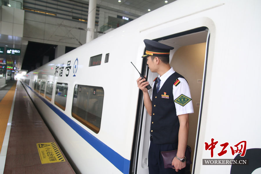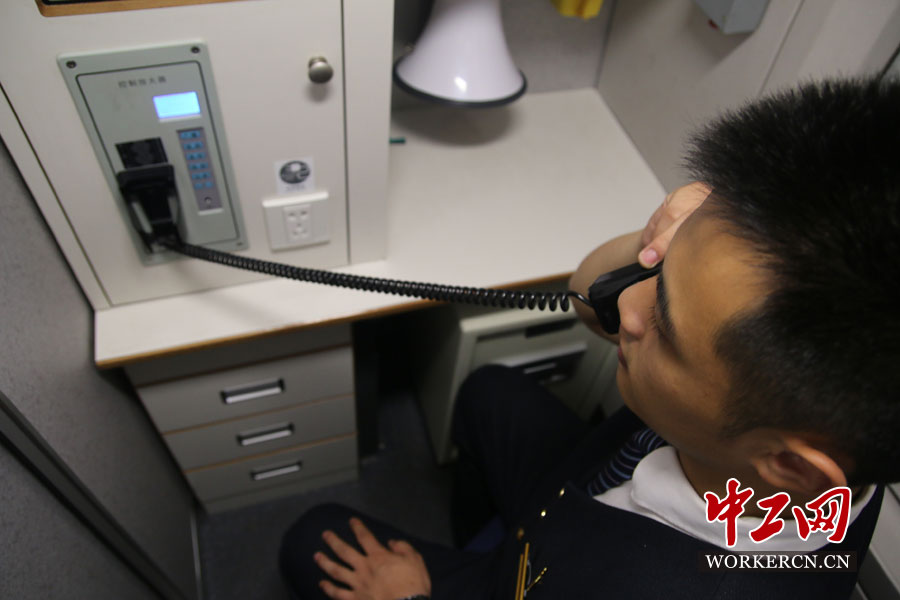 “动少”刘子君对列车即将到站,进行广播。