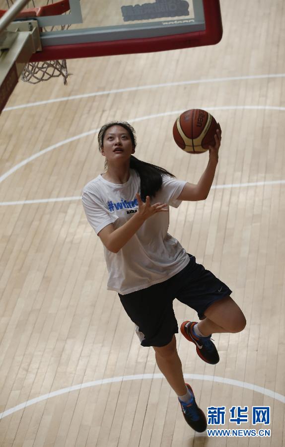 6月9日,谌玥在训练中上篮。新华社记者孟永民摄