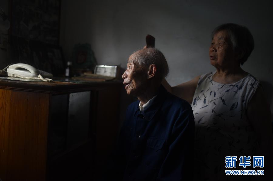 6月29日,王忠的老伴在卧室给他梳理头发。 新华社记者 李尕 摄