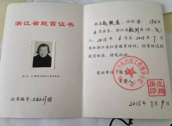 扫盲班迎来最大龄学员百岁老太赵顺金