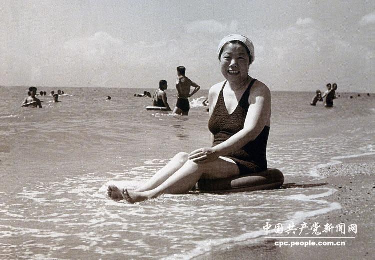 1958年,邓颖超在北戴河海滩留影