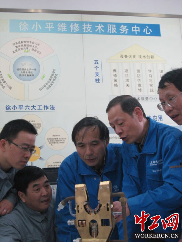 (中工网记者 秦笑语)在位于上海大众汽车有限公司发动机厂综合楼的劳模创新工作室里,一位身着蓝色工装、面皮白净的中年男人正在和同事们一起讨论图纸,他就是上海大众汽车有限公司发动机厂维修部门的高级经理徐小平。