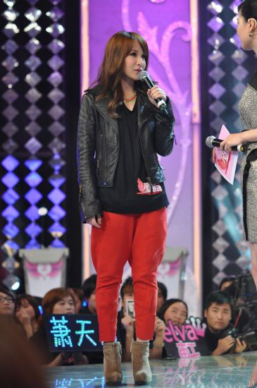 阿娇这条裤子稍好一些。虽然挡住了萝卜腿,但是仍然显腿巨短无比,阿娇以后可以避免紧身裤会好一些。