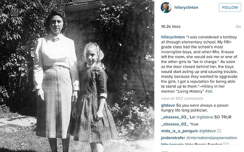每张照片都包含政治信息。在竞选阵营努力将希拉里描述为斗士的同时,也塑造其作为普通美国人的女儿、母亲以及外祖母的形象。(网页截图)