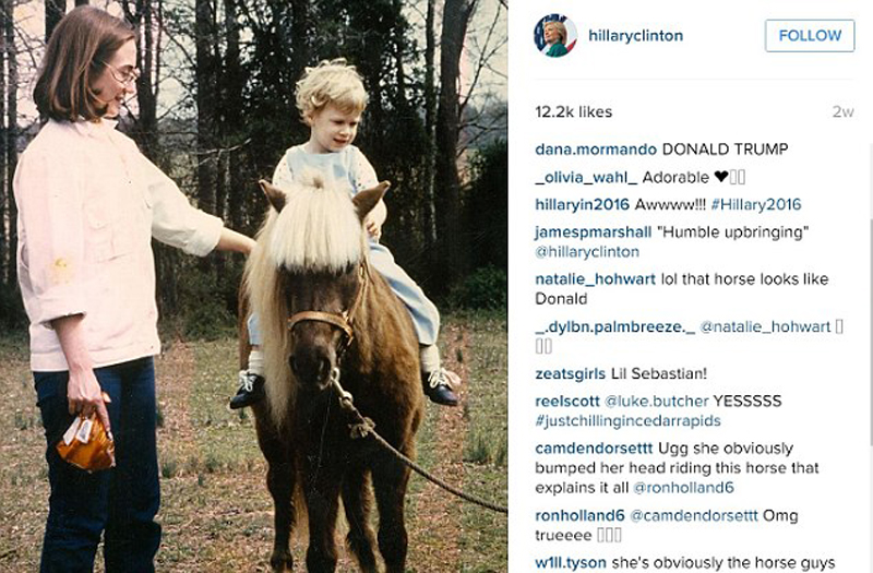 类似切尔西骑着小马的婴儿照片,将希拉里描述为典型的母亲。(网页截图)