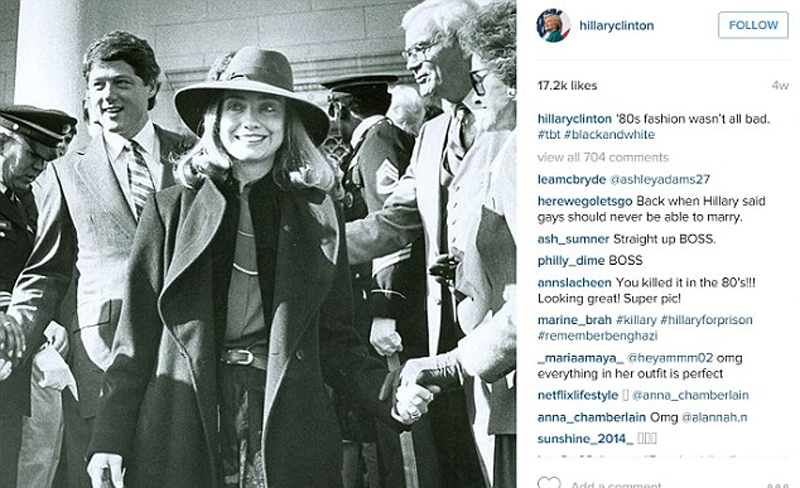 希拉里的首席媒体顾问称,这些职业生涯初期的老照片非常重要,因为它们可以证明希拉里总是在为美国选民殚精竭虑地工作。(网页截图)