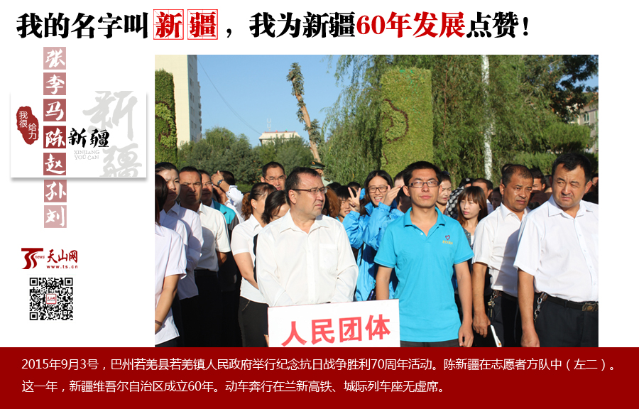 编者按:喜迎新疆维吾尔自治区成立60周年之际,天山网推出《“礼”赞60年·梦想来敲门——我的名字叫新疆》系列报道,讲述和新疆同名的他们的故事,无论是牛气的管新疆,还是喜庆的郝新疆,他们的故事,真实、平凡却让人感动。今天,我们推出两个90后的陈新疆,他们同名,但年龄相差一岁,他们一个在巴音郭楞蒙古自治州若羌县,一个在伊犁哈萨克自治州尼勒克县,却有着共同的心愿:祝福新疆,希望新疆越来越好,希望新疆人越活越开心。