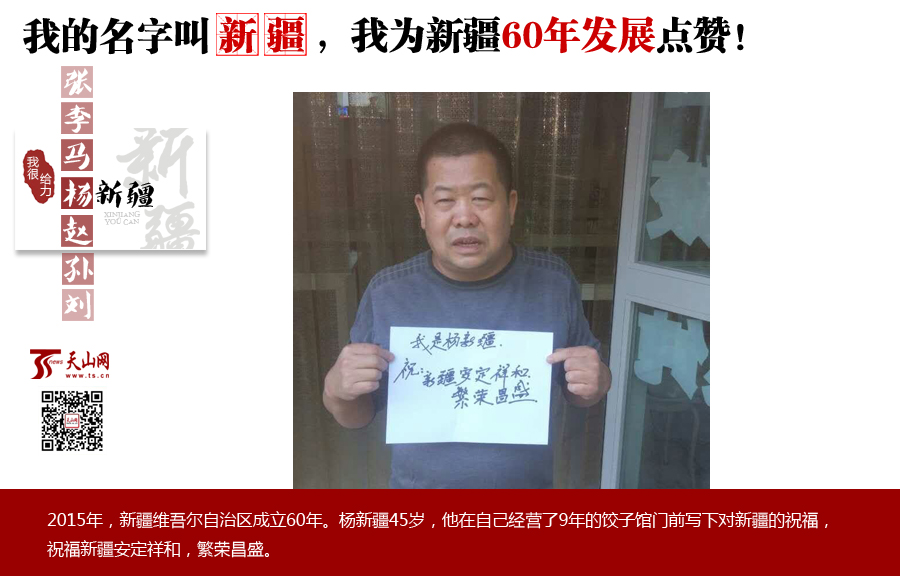 杨新疆:和新疆同名,我很荣幸。我祝新疆人越过越好,生活更上一层楼。