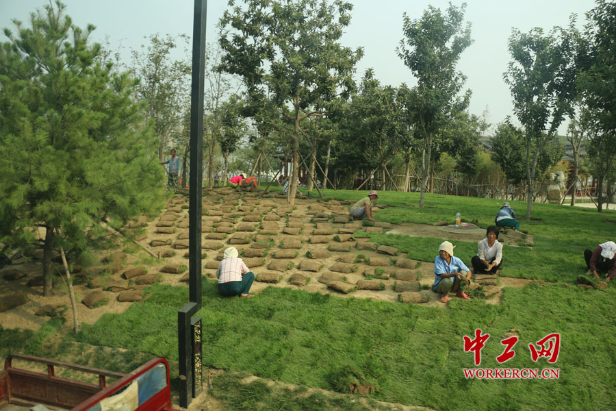 园艺工人正在辛勤工作。中工网记者朱晶晶摄。
