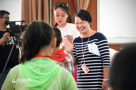 心理情绪课结束后,小学生排队离开阶梯教室,他们向刘婷挥手道别,刘婷笑着回应。