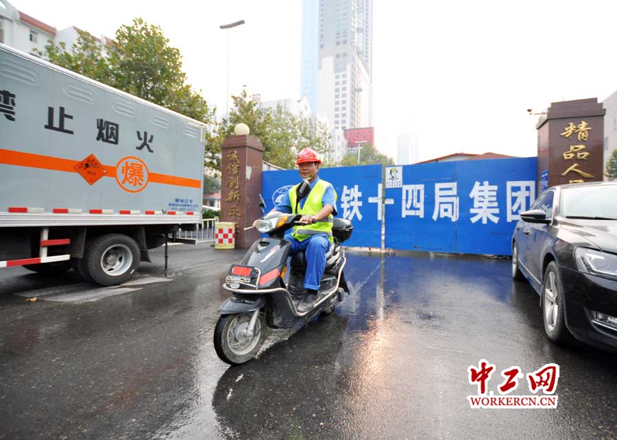 中秋节这天的一大早,老信骑着心爱的电动车,穿梭于工地与项目部之间,最忙时一天要来回奔波十几公里。每天他都要将要进场的钢筋等物资质保单送到项目部,保证现场物资的充足。