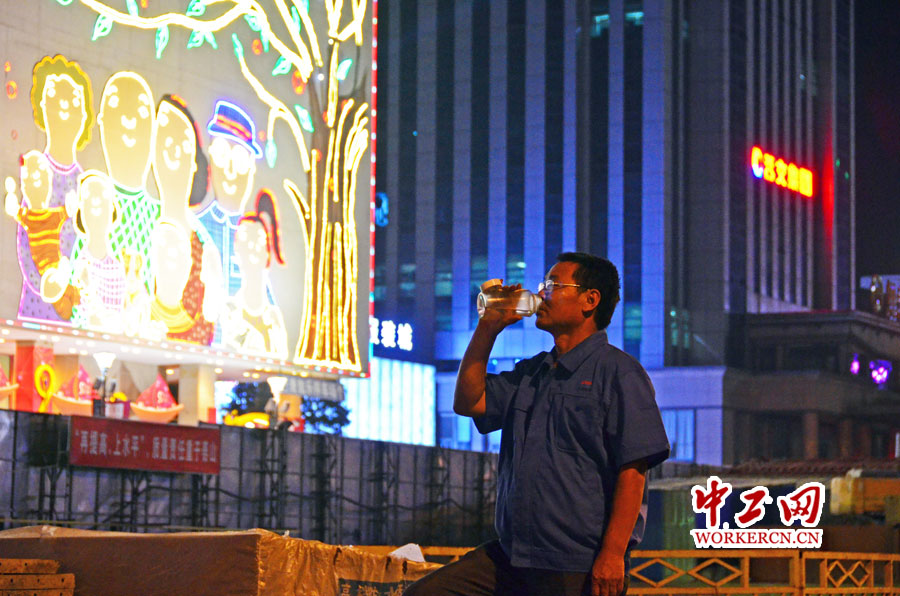 看着工区周围的美丽霓虹灯若有所思,也许他曾经看到对面卡通人员一家团聚的形象,也会有所羡慕,但是,作为一名老建设者,深知今天地铁建设所做的努力,是为更多人的团聚。(赵岩 刘家鹏)